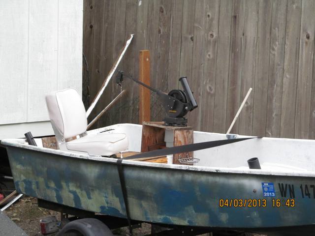 I purchased a small downrigger clamp mount with the intent to use it for trout/kokanne fishing in my local lake. The problem is, I have a fiberglass boat, and I cannot mount it to the sides or back, as the mount isnt wide enough. I have looked into cutting my boat, but the edges of the boat have metal on them, which I would have to cut through to possible mount it. Any advice on how to mount my downrigger?